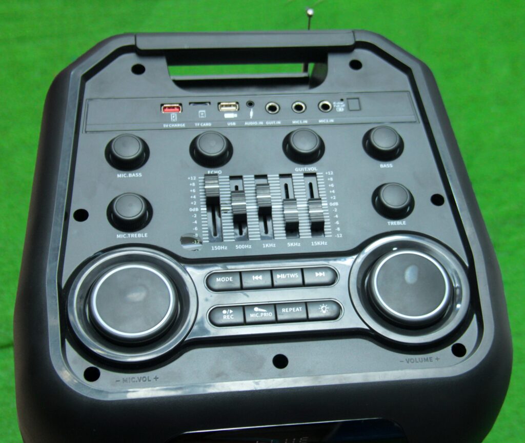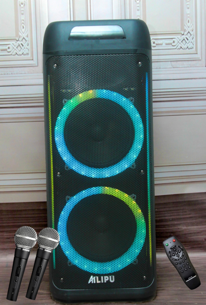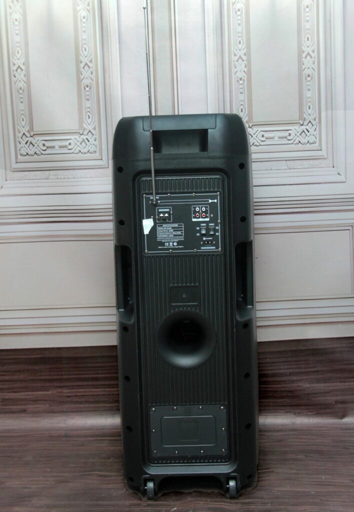 A standard Bluetooth double 15 speaker for public addressing, and music with super audible sound and lasting battery playtime